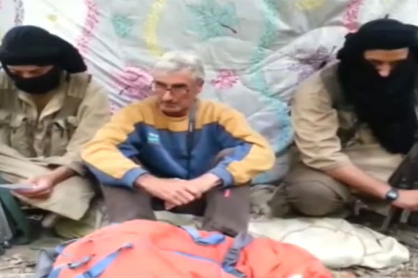 Zijn ontvoerders dreigden hun slachtoffer te vermoorden als Frankrijk de deelname aan de strijd in Irak tegen Islamitische Staat niet onmiddellijk stopte. De Franse minister van Buitenlandse Zaken, Laurent Fabius, zei maandag dat zijn land daar absoluut niet naar zou luisteren.