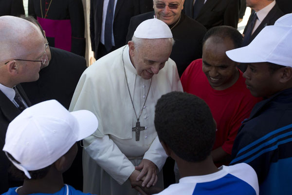 ‘Ik geef u deze pen omdat ik denk dat u nog aardig wat dingen te ondertekenen heeft,’ zei Franciscus tegen de politicus. ‘Ik hoop met deze pen de vrede met Israël te zullen ondertekenen,’ zei Abbas hierop. De paus liet vervolgens niet de gelegenheid voorbij gaan om te zeggen ‘schiet op, schiet op!’.