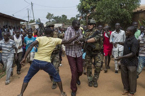 In het plaatsje Boda, 100 kilometer ten westen van de hoofdstad Bangui, gingen inwoners met elkaar op de vuist. Ook beschoten zij elkaar met geweren en werden kapmessen gebruikt. Tijdens de gevechten zijn ook tientallen huizen in brand gestoken.