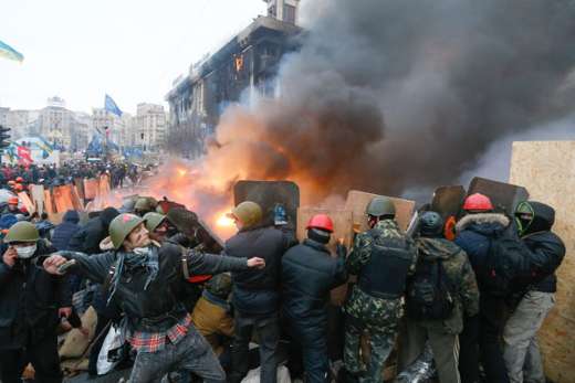 Ondanks een officieel staakt-het-vuren zijn donderdagochtend weer gevechten uitgebroken tussen oproerpolitie en anti-regeringsbetogers, die al sinds november het vertrek van president Victor Janoekovitsj eisen.