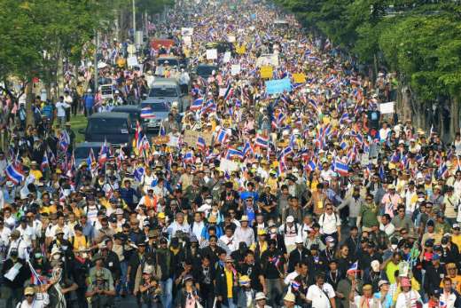 Zijn zus schreef verkiezingen uit om de oppositie zo enigszins tegemoet te komen, maar Thaugsuban riep op tot een boycot. Hij moedigt zijn aanhang aan om te blijven protesteren tot de regering, die volgens hem tiranniek is, opstapt.