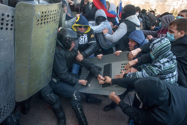 ‘Ik denk dat in de nabije toekomst nog niet is vast te stellen wie er op de Krim waren, maar een onderscheiding van de staat krijgen zij natuurlijk sowieso,’ zei Poetin. Volgens hem hebben zij de Krim-bevolking ‘beschermd’.