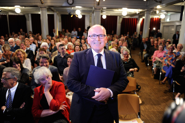 Tijdens de publiekslezing deelde Timmermans onder meer zijn visie over het Europese en Nederlandse veiligheidsbeleid.