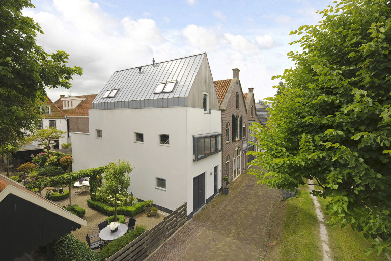 Met 236 vierkante meter is er ook voldoende ruimte om te vertoeven. Zo zijn er twee badkamers, en naast de twee slaapkamers op de begane grond zitten er boven nog drie. De plafonds zijn er wel lager. De achterste slaapkamers kijken uit op de dorpskerk die omringd is door een groene tuin.