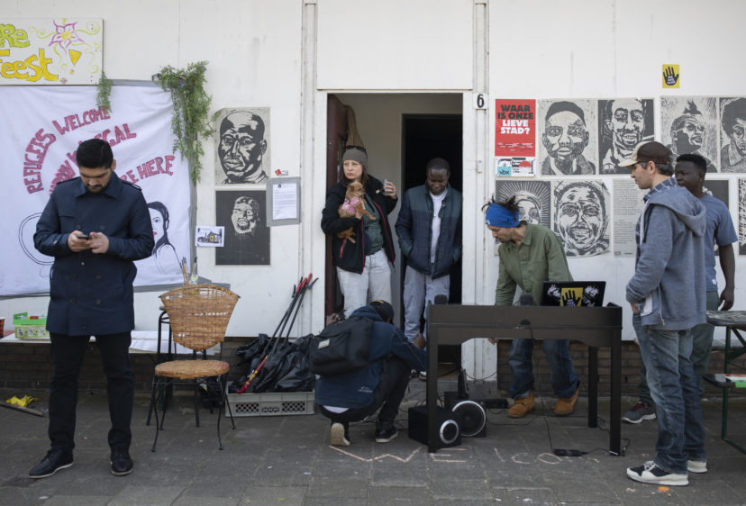 De uitgeprocedeerde asielzoekers van We Are Here stonden vandaag, donderdag, voor de rechter omdat ze de door hun gekraakte panden in Amsterdam-Oost niet uit willen.
