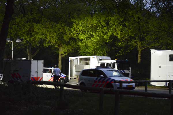 De politie zoekt in het recreatiegebied met onder meer een helikopter en honden. Ook agenten op paarden doorzoeken het gebied.