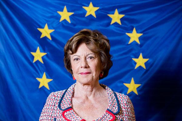 Stemmen op D66 doet eurocommissaris Neelie Kroes (VVD) niet. Maar de manier waarop haar partijgenoot en premier Mark Rutte de Europese Unie verdedig vindt Kroes ‘heel oneerbiedig’.