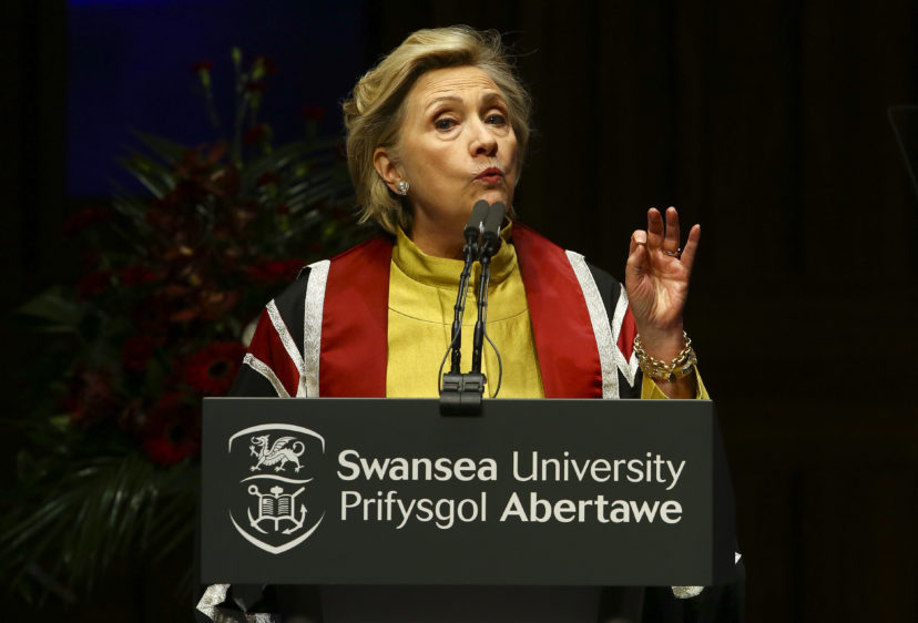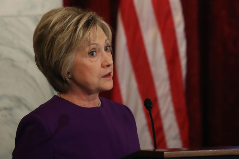 Ondanks haar verlies tijdens de presidentsverkiezingen afgelopen november, kan Hillary Clinton het niet laten om publiekelijke kritiek te uiten op het beleid van Donald Trump. Met de taal die Trump uitslaat, lokt hij een nucleaire wapenwedloop uit, denkt Clinton.
