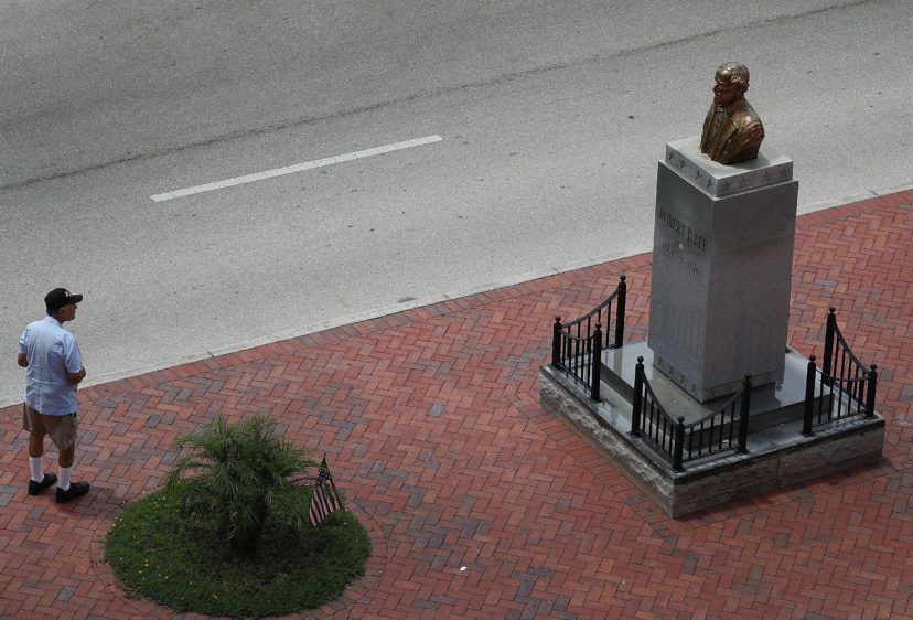 Best rustig, zo’n cultuuroorlog. Tegen de sokkel van het meest omstreden standbeeld van Nederland staan losjes wat terrastafels opgestapeld. Niet als statement, gewoon omdat het zo uitkomt. Geen beveiligers, geen hekken, geen afzetlint zelfs. Jan Pieterszoon Coen staat er vanochtend alleen voor op de Roode Steen in zijn geboortestad.
