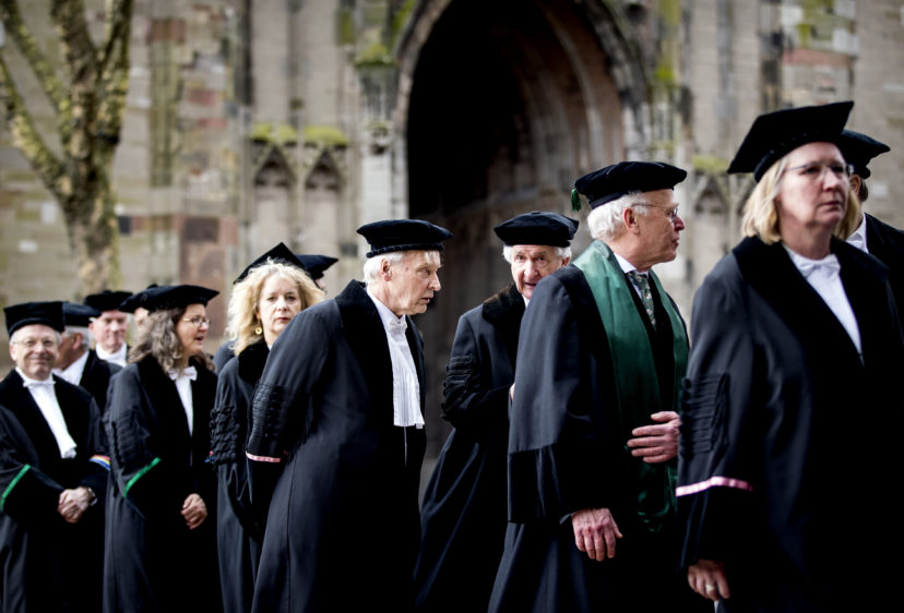 in Utrecht Studeren in een nachtclub Rode muren, zwarte gordijnen, kroonluchters. Het is een nachtclub op de bovenste etage van een restaurant, maar vandaag heersen hier de wijsheid en de stilte. Er wordt niet gefeest, maar gestudeerd.