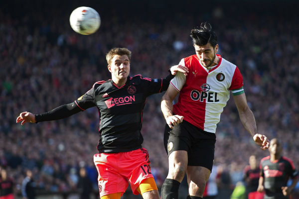 Lasse Schöne maakte de enige treffer van het duel tussen zijn Ajax en AZ. Hij benutte na 47 minuten een vrije trap.