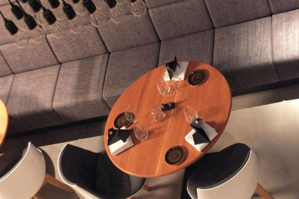 Binnen herinneren alleen de pilaren aan de vroegere functie van het gebouw. De bakstenen bogen zijn slim gecombineerd met een strak, paarsverlicht interieur om het geheel een moderne, industriële sfeer te geven.