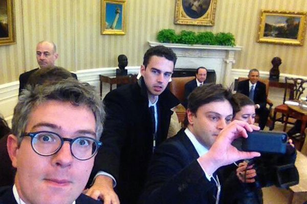 Tijdens de herdenkingsdienst voor de overleden oud-president Nelson Mandela van Zuid-Afrika maakte de Amerikaanse president een selfie met de Britse premier David Cameron en zijn Deense collega Helle Thorning-Schmidt.